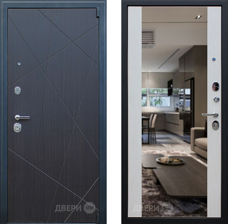 Входная металлическая Дверь АСД Вектор с зеркалом Лиственница белая в Жуковский 860х2050 мм