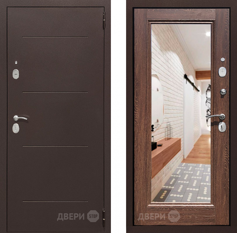 Входная металлическая Дверь Престиж 100 с зеркалом Медь/Дуб филадельфия коньяк в Жуковский 860х2050 мм