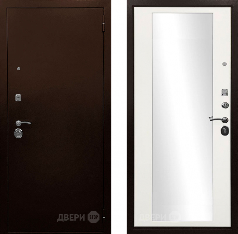 Входная металлическая Дверь Ратибор Рим 3К зеркало Белый матовый в Жуковский 860х2050 мм