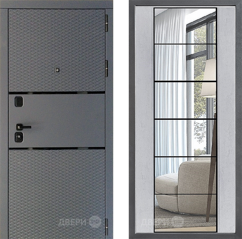 Входная Дверь Дверной континент Диамант Дизайн ФЛЗ-2 Зеркало Бетон светлый 960x2050 мм