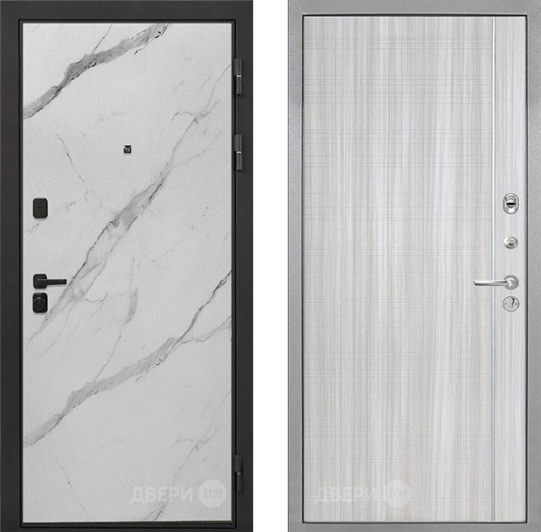 Входная Дверь Интекрон (INTECRON) Профит Black Мрамор Арктик В-07 с молдингом Сандал белый 860x2050 мм