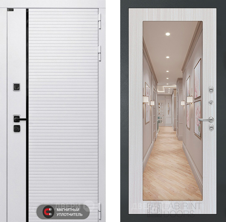 Входная Дверь Лабиринт (LABIRINT) Royal Зеркало 18 Сандал белый 960x2050 мм