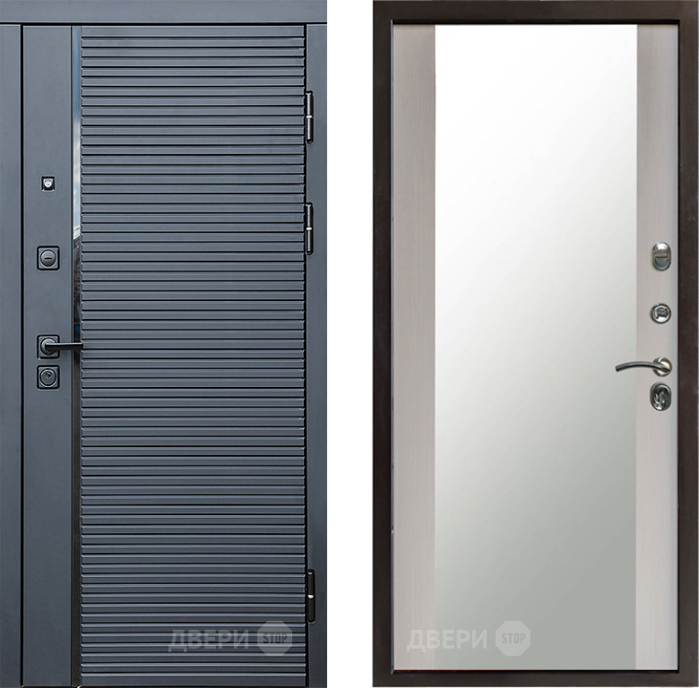 Входная Дверь Престиж Черная Линия Зеркало Лиственница белая 960x2050 мм