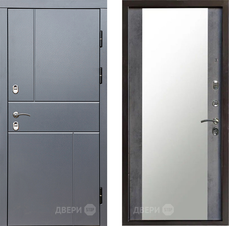 Входная Дверь Престиж TERMO с терморазрывом Горизонт Грэй Зеркало Бетон темный 860x2050 мм