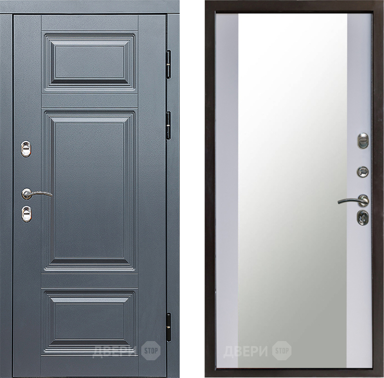 Входная Дверь Престиж TERMO с терморазрывом Премиум Грэй Зеркало Белый софт 860x2050 мм