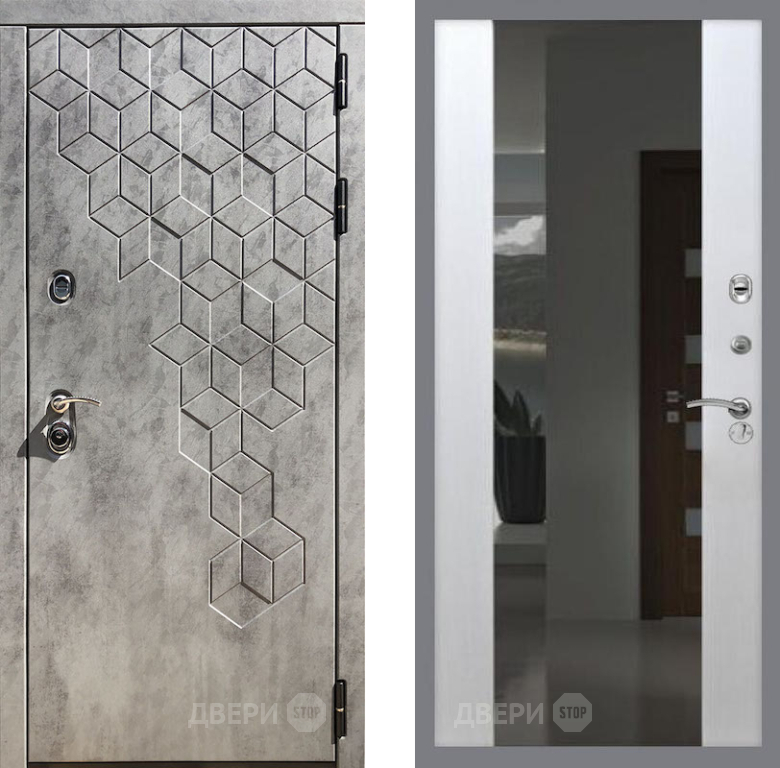 Входная Дверь Рекс (REX) 23 СБ-16 Зеркало Белый ясень 860x2050 мм
