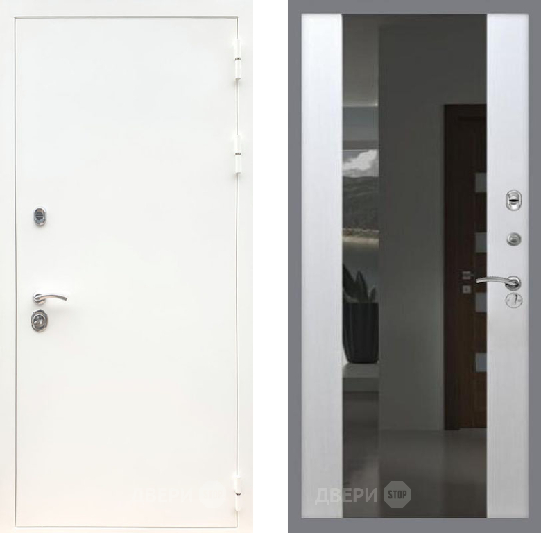 Входная Дверь Рекс (REX) 5 Белая Шагрень СБ-16 с Зеркалом Лиственница беж 860x2050 мм