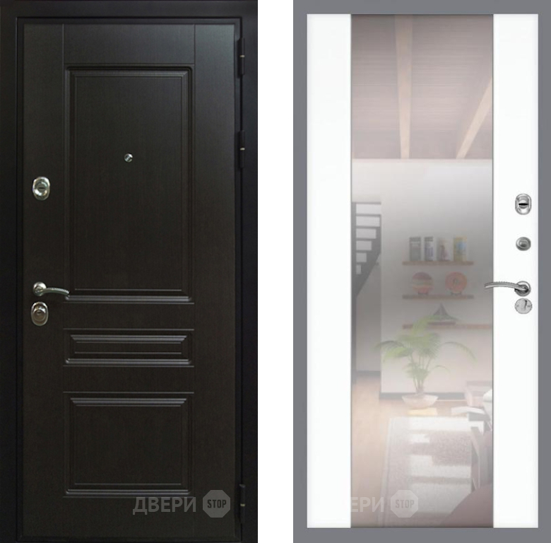 Входная Дверь Рекс (REX) Премиум-Н СБ-16 Зеркало Силк Сноу 960x2050 мм