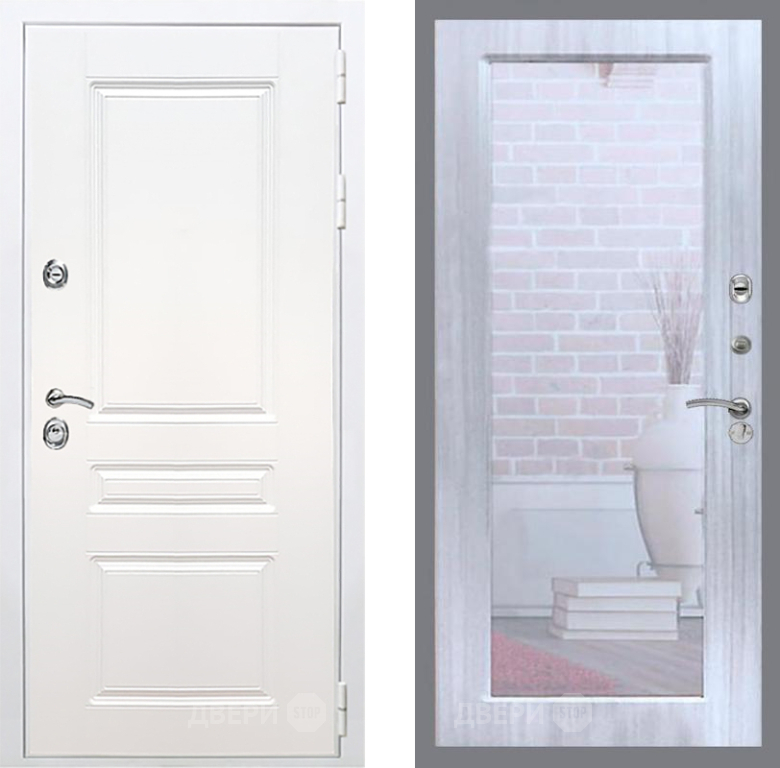 Входная Дверь Рекс (REX) Премиум-н Силк Сноу Зеркало Пастораль Сандал белый 860x2050 мм