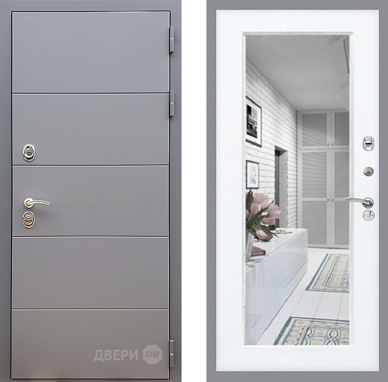 Входная Дверь Стоп АРТ ГРАФИТ Зеркало Силк Сноу 860x2050 мм
