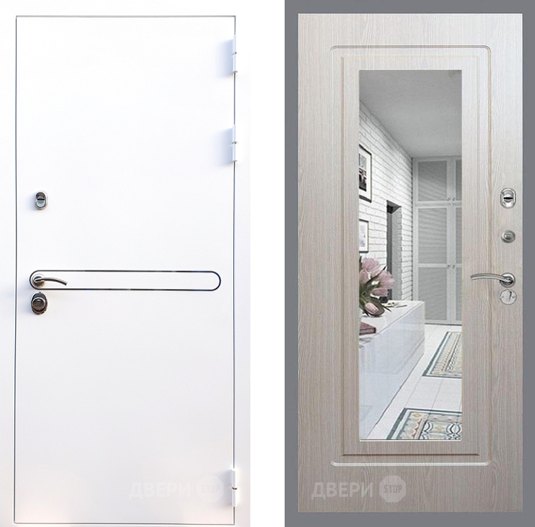 Входная Дверь Стоп Лайн Вайт Зеркало ФЛ-120 Беленый дуб 860x2050 мм